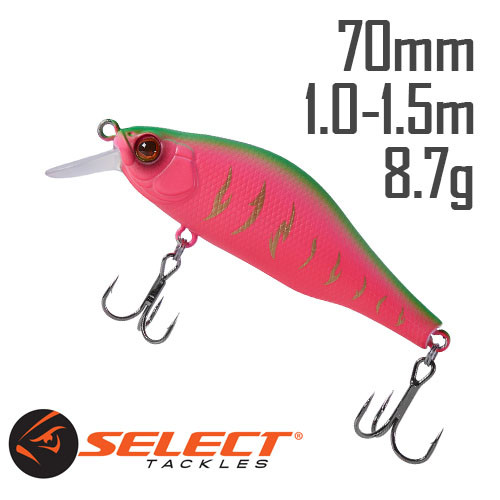 Воблер Select Reflex 70SP – приманка класса шед, визуально напоминающая небольшую кормовую рыбу – карасика или плотвичку. В определенных условиях такой типаж может ловить существенно лучше, чем твичевые минноу, поэтому для успешной рыбалки его наличие в коробке бывает строго необходимо. Все зависит от того, чем кормится хищник в данный момент. У Select Reflex 70SP на равномерке не размашистая игра с частыми колебаниями. Исходя из этого, самой оптимальной проводкой будет «stop and go» или же короткие потяжки с паузами. На легком твичинге приманка становится похожей на мечущуюся, сверкающую боками рыбешку. В зависимости от активности, щука охотно реагирует на ту или иную проводку, рыболову остаётся только найти к ней подход. Воблер оснащён магнитной системой дальнего заброса, которая стабилизирует его широкое тело во время заброса, не давая ему переваливаться в полёте.